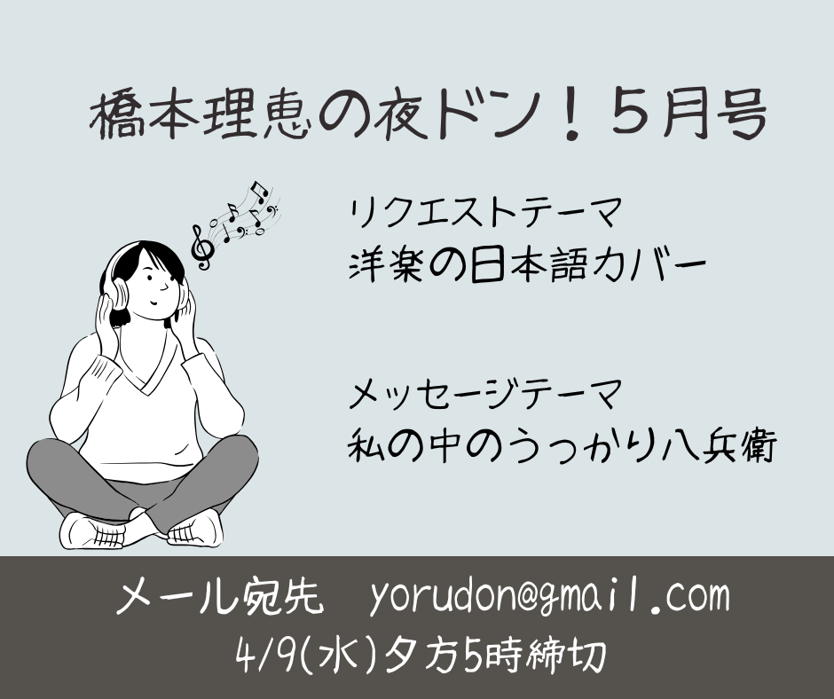 続きを読む… from 橋本理恵の夜ドン5月号★リクエスト募集中