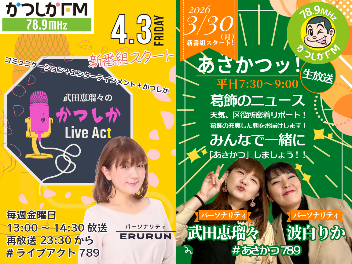 ■(金)13:00~14:30 武田恵瑠々のかつしかLive Act