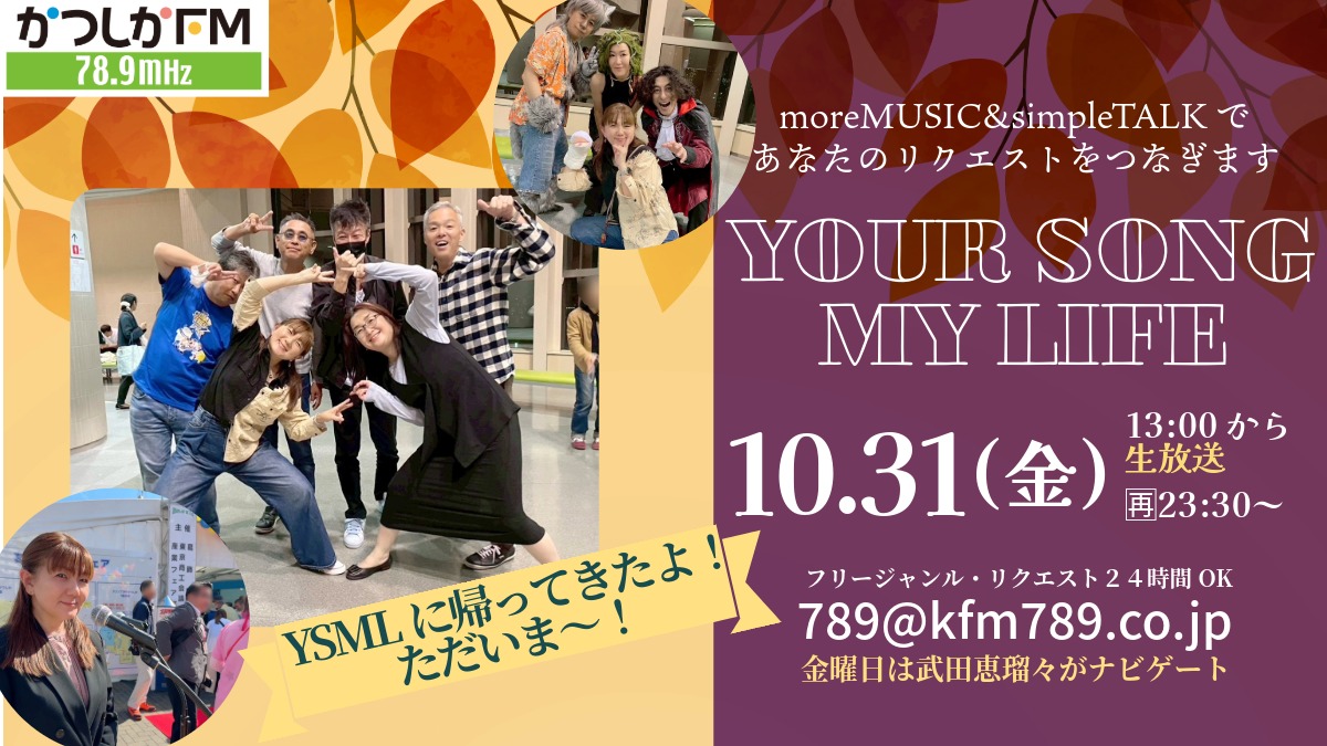 10月最後の月(ゲッツ)曜日にお届けする 13時からの「Your Song My Life」は 〽︎パ パ パ パ ぱっつぁん〜 ぱっつぁん〜🎶 (自分から自分へのバトンタッチテーマソング […]