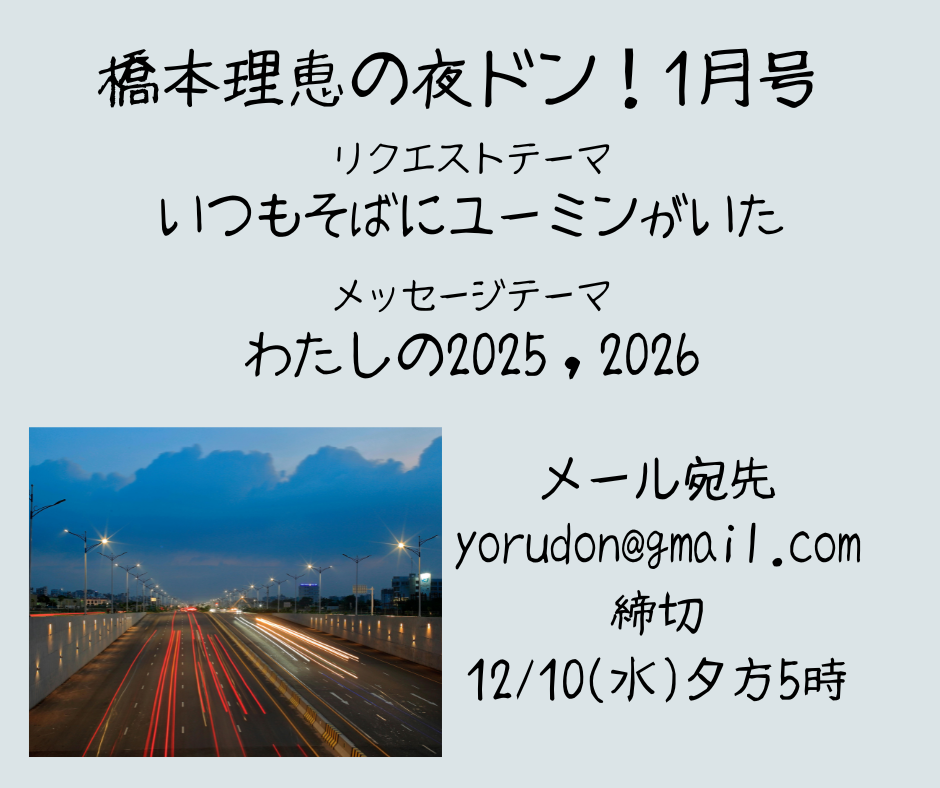 続きを読む… from 橋本理恵の夜ドン1月号★リクエスト募集中