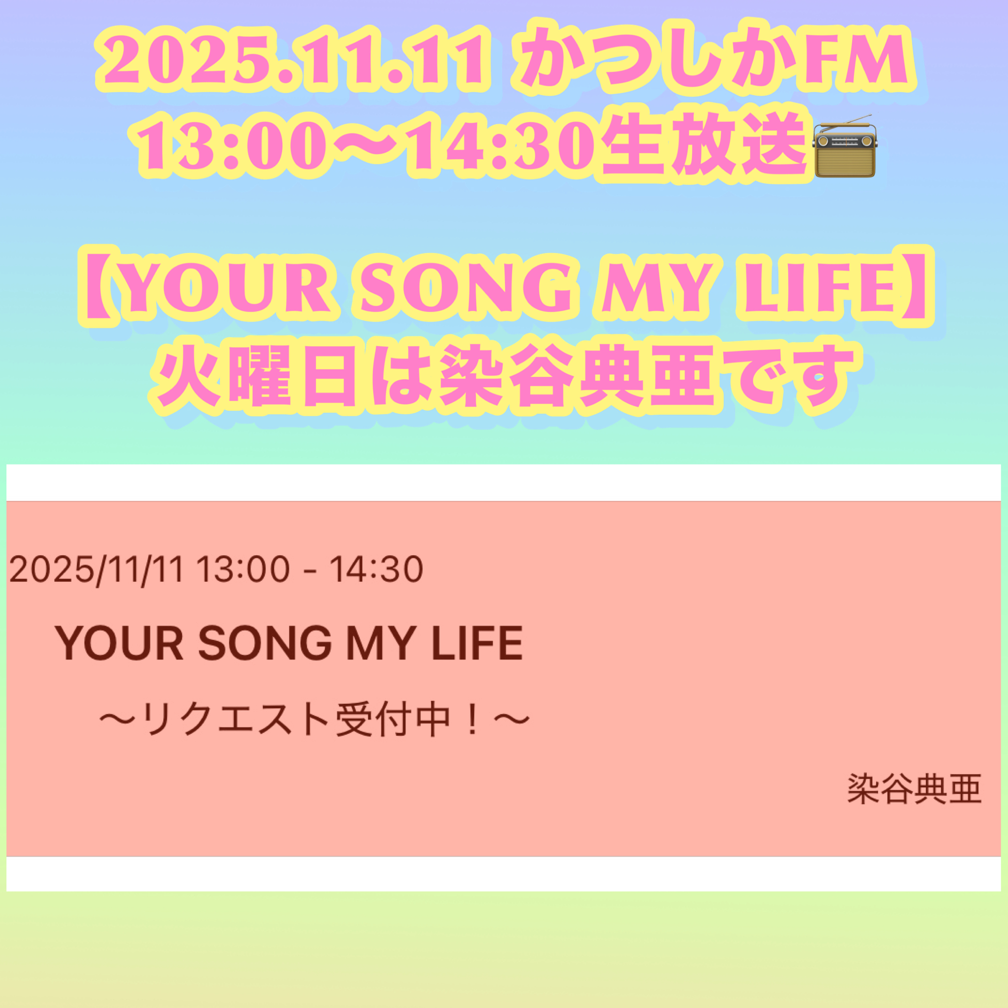 2025.11.11(Tue)【YOUR SONG MY LIFE】 毎週火曜日は染谷典亜がお送りします。 典亜のえびキスTuesday 《とっつーバースデーイブイブ》 171 YOUも一緒にお祝いしてくだ […]