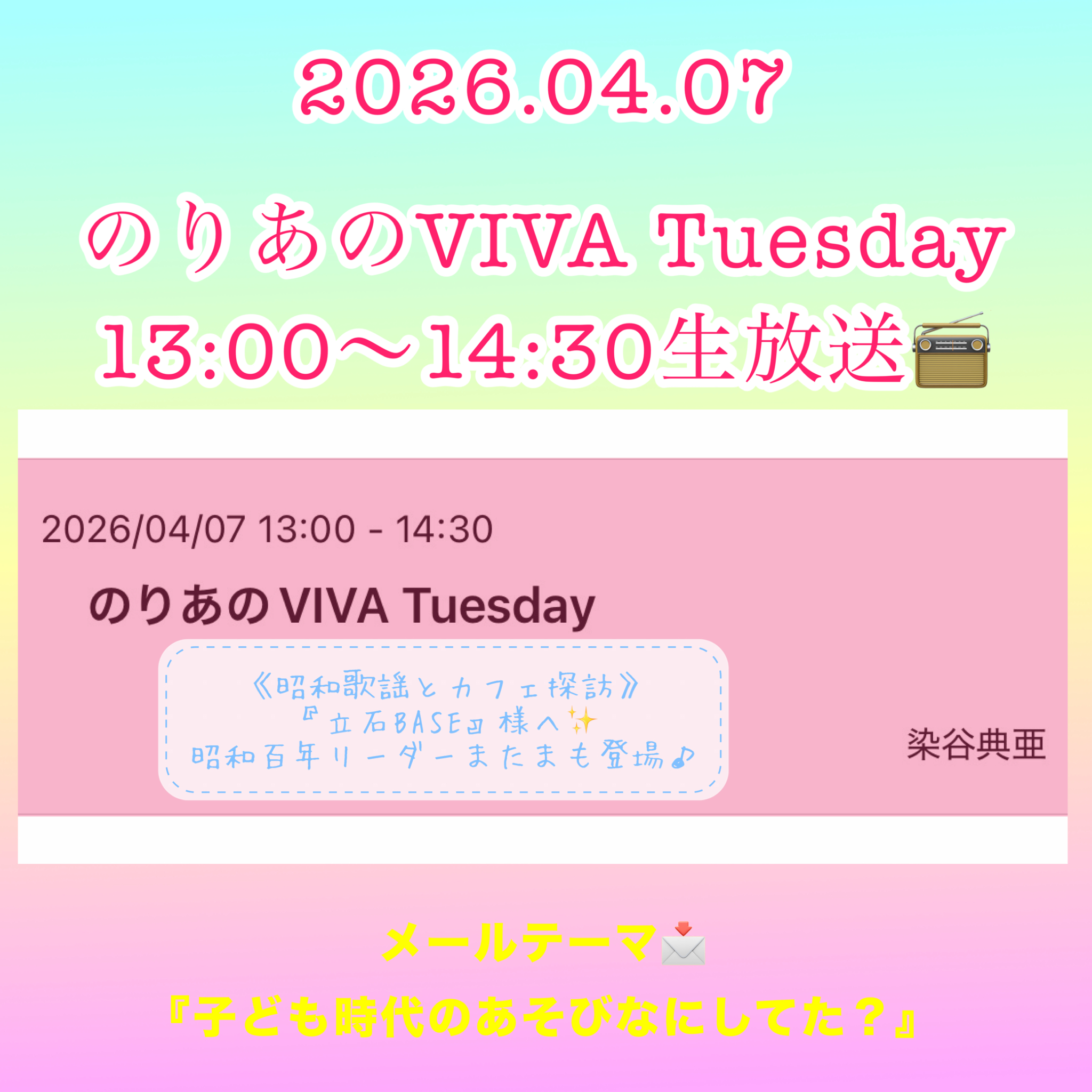 かつしかFMメールフォーム→ https://t.co/X26XjkRdlW 『のりあのVIVA Tuesday』