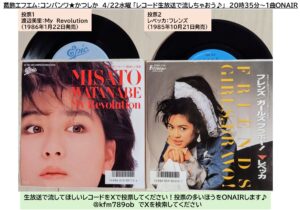 ⇒ゲットした2枚のシングルレコード(シングル盤)から投票の多かったほうを生放送ONAIR♪(音飛びはご容赦ください!)