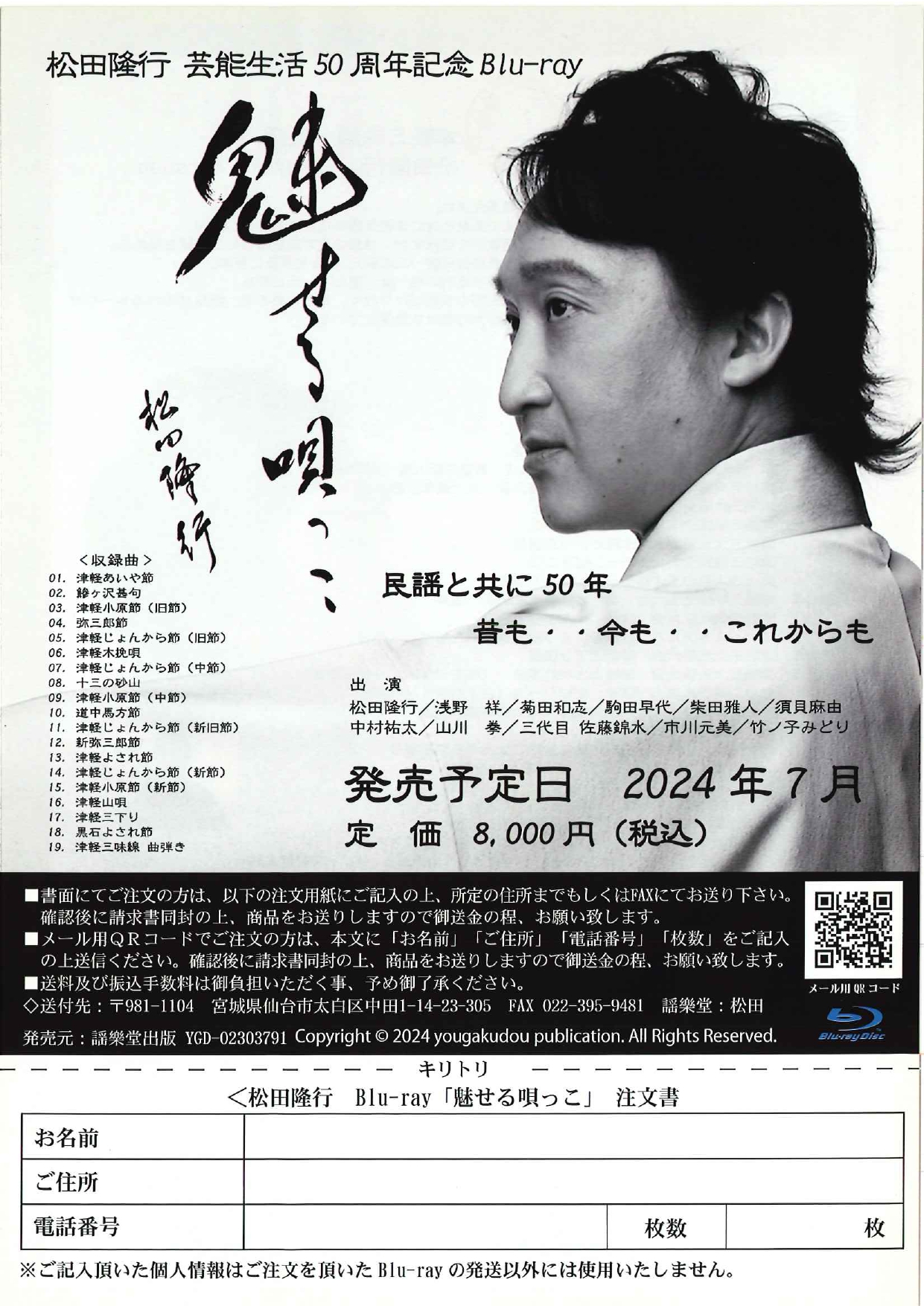 郵便:〒124-0012 葛飾区立石5-13-1 かつしかFM麻生みどりのいろはに民謡「松田隆行さんBlu-rayプレゼント」係まで