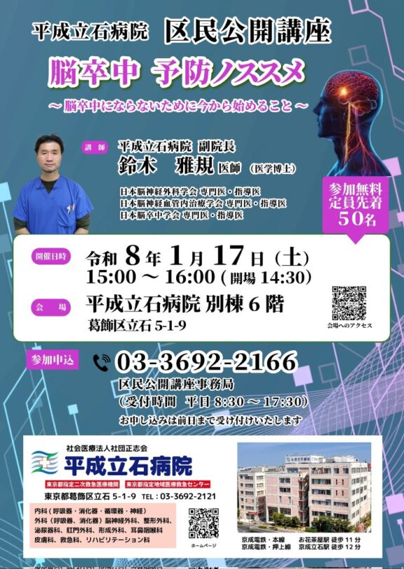 平成立石病院 区民公開講座「脳卒中 予防のススメ~脳卒中にならないために今から始めること~」 2026.01.19