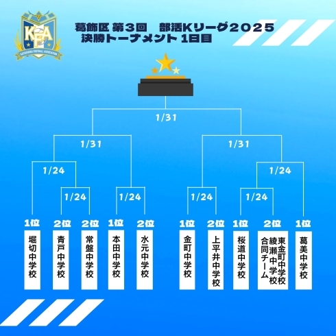 合同チーム(綾瀬中・東金町中)、葛美中学校、堀切中学校)