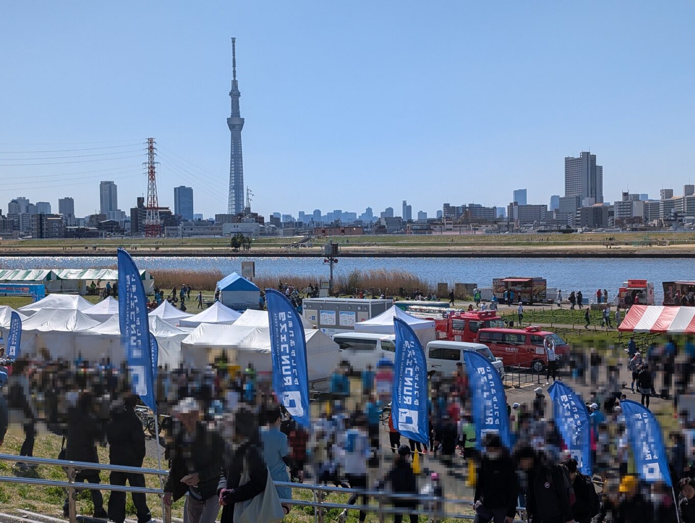 東京スカイツリーを眺めながら、荒川河川敷を走ります。