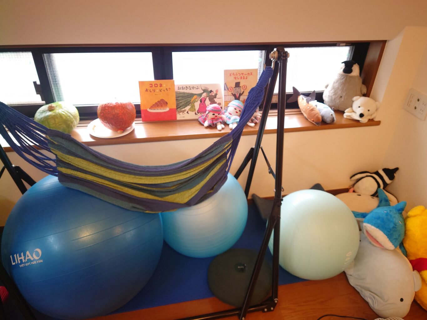 沢山の遊び道具や感覚を掴む器具などが置いてあります。