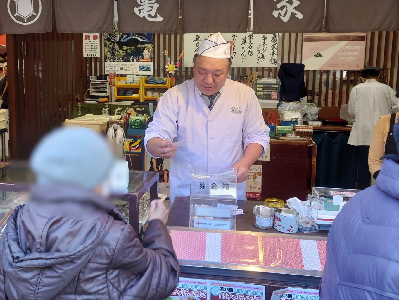 亀家本舗さんの寄付金10万円を加え合計151,606円を、後日、日本赤十字社へ寄付させていただくそうです。