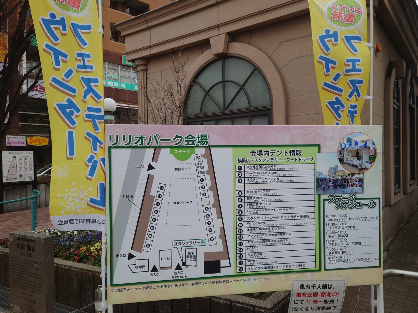 午前10時30分から亀有リリオパークでは、キッズダンスなどのステージイベントや沢山の飲食ブースが出店。