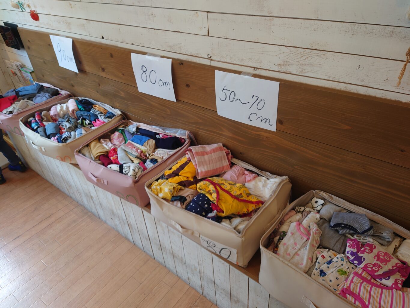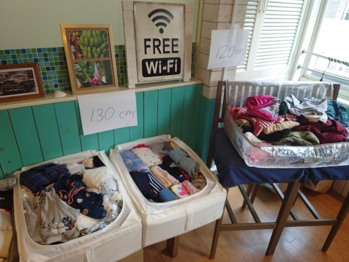 こども服交換会は、もう着なくなった子供服を持ち込んで、会場にある今着たい他の子供服を持ち帰ることができます。
