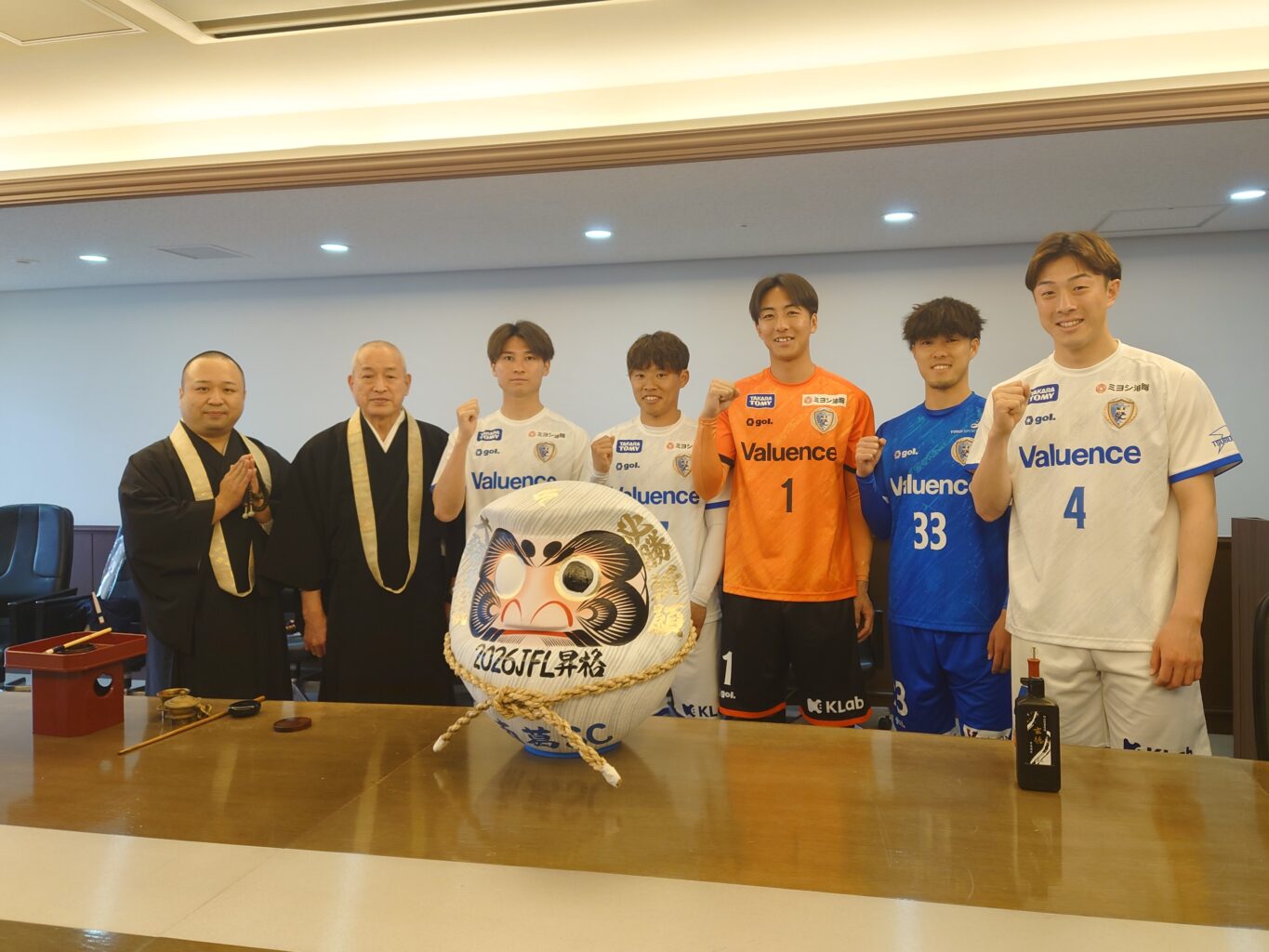 『2026南葛SCキックオフカンファレンス』は、午後5時から行われ、だるまの目入れや新ユニフォームのお披露目、そして新加入選手の紹介などが行われ、会場は多くの関係者やボランティアの皆さんなどの熱気に包まれていました。