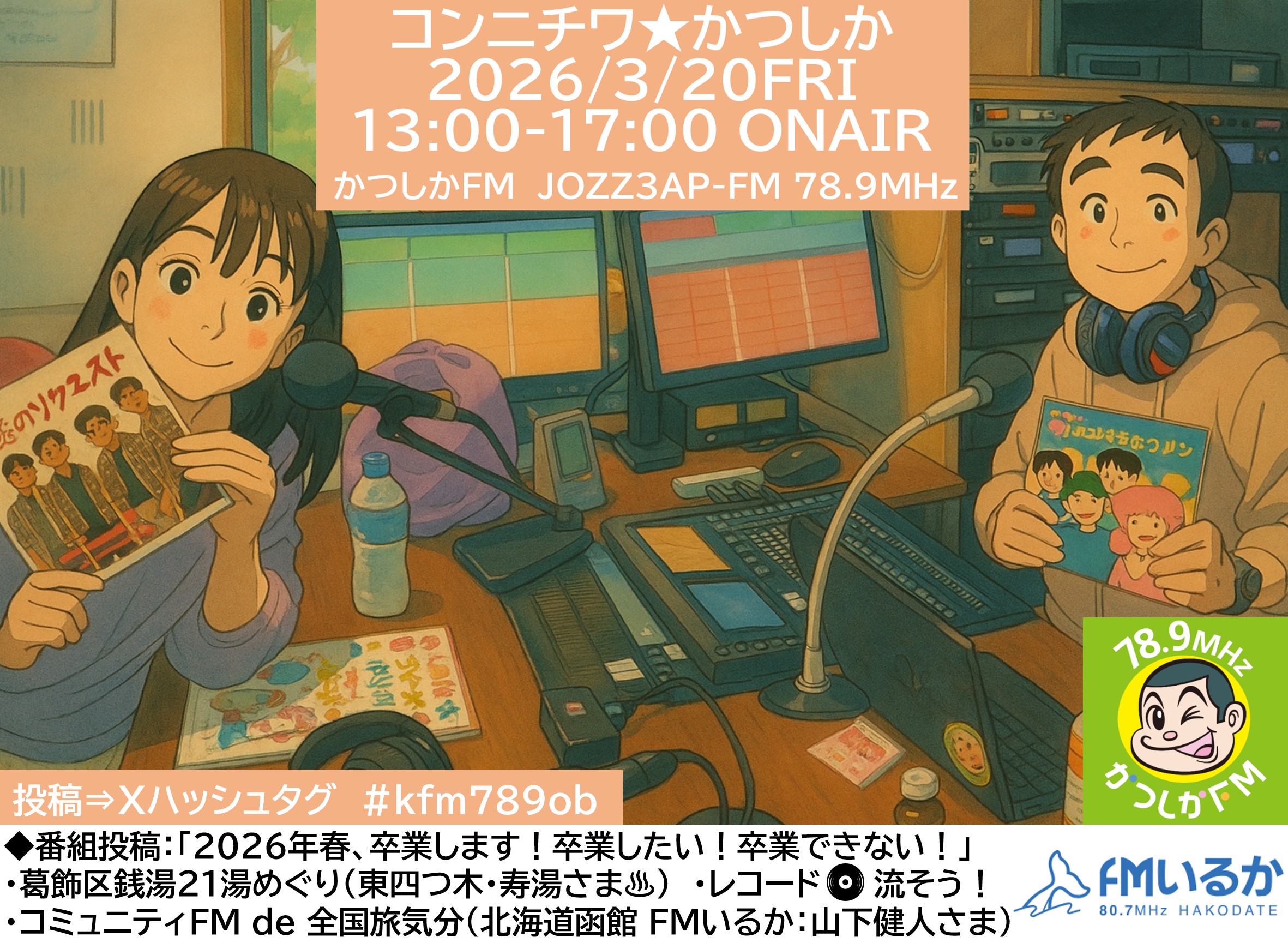 コンニチワ★かつしか(略してコン★かつ) 8/12(月曜)休日12:30~16:00に生放送あります~!! 日時:8月12日(月曜日:山の日振替休日) 午後12時30分~16時の生放送!! 番組名:コンニチワ★かつしか( […]