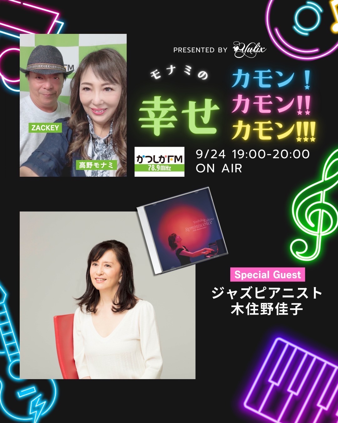 9/24(水)19時からゲストに木住野佳子さんをお迎え!